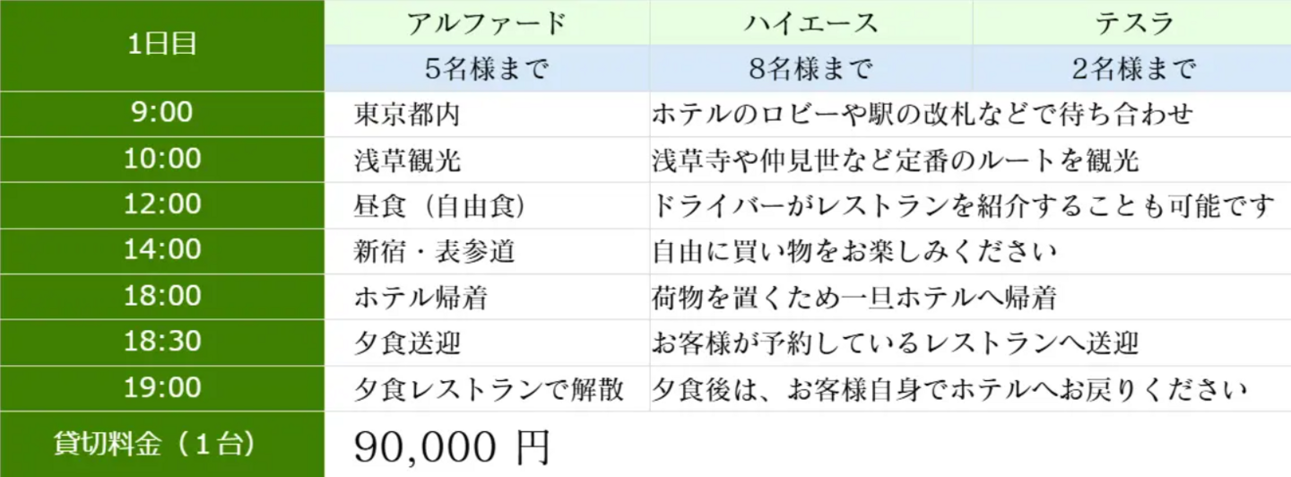 プラン①(都内発・日帰り観光)