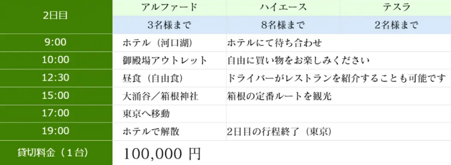 プラン②(都内発・河口湖/箱根2日間)