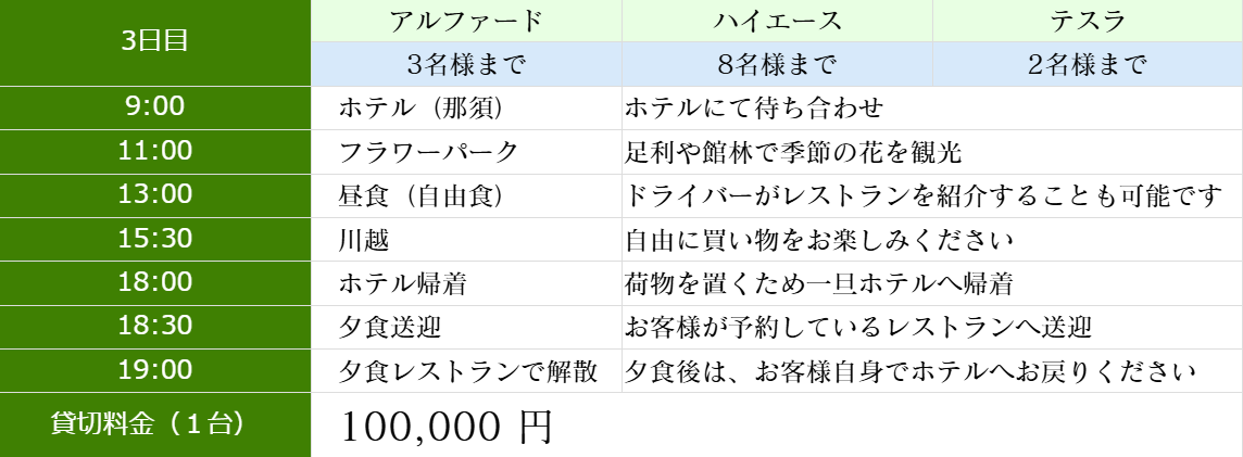 プラン③(都内発・日光/那須/川越3日間)